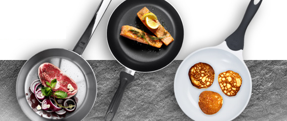 Keramikpfannen sind heißbegehrt: Das Material ist besonders hitzebeständig und gibt somit bei sehr hohen Temperaturen keine Schadstoffe frei. Aufgrund seiner ausgezeichneten Antihaft-Eigenschaften können Sie Speisen fettfrei, vitaminschonend und gesund zubereiten. Die Pfannen bestehen jedoch nicht ausschließlich aus Keramik. Sie werden aus Aluminium, Edelstahl oder Aluguss gefertigt und kommen in Form einer Keramikbeschichtung zum Einsatz. In dieser Kombination sorgen die Materialien, durch die optimale Wärmeleitfähigkeit, für hervorragende und gleichmäßig gegarte Bratergebnisse.